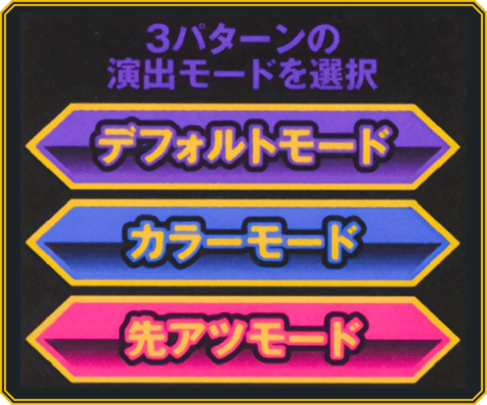 通常ゲームは、デフォルトモード・カラーモード・先アツモードの3パターンの演出モードを選択。